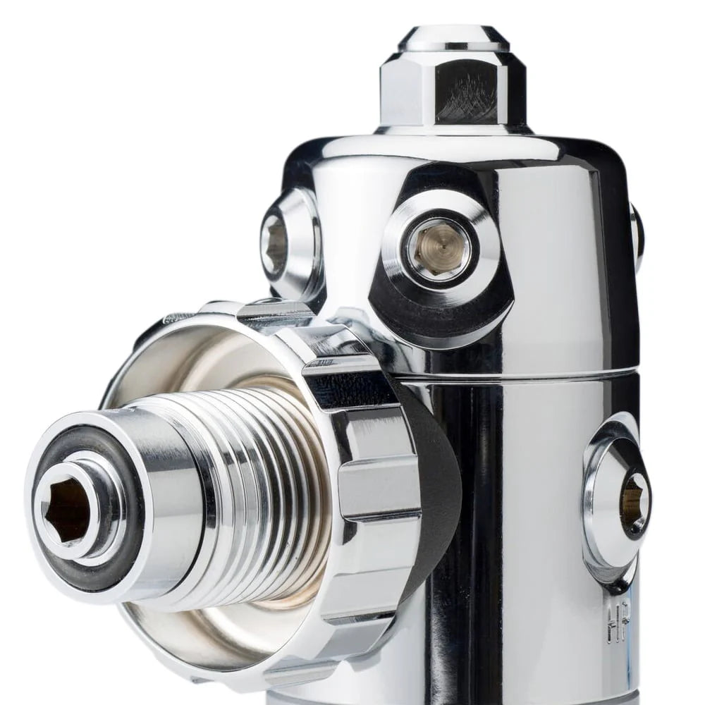 The Apeks DST First Stage Regulator with 5th Port has all the features of Apeks DST First stage. The only difference is that a 5th medium pressure port has been added on top of the rotating turret, making it ideal for any side-slung setup from stage bottles to CCR bailout and plain sidemount.